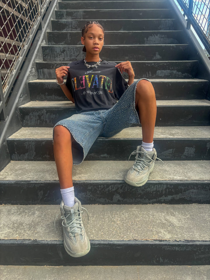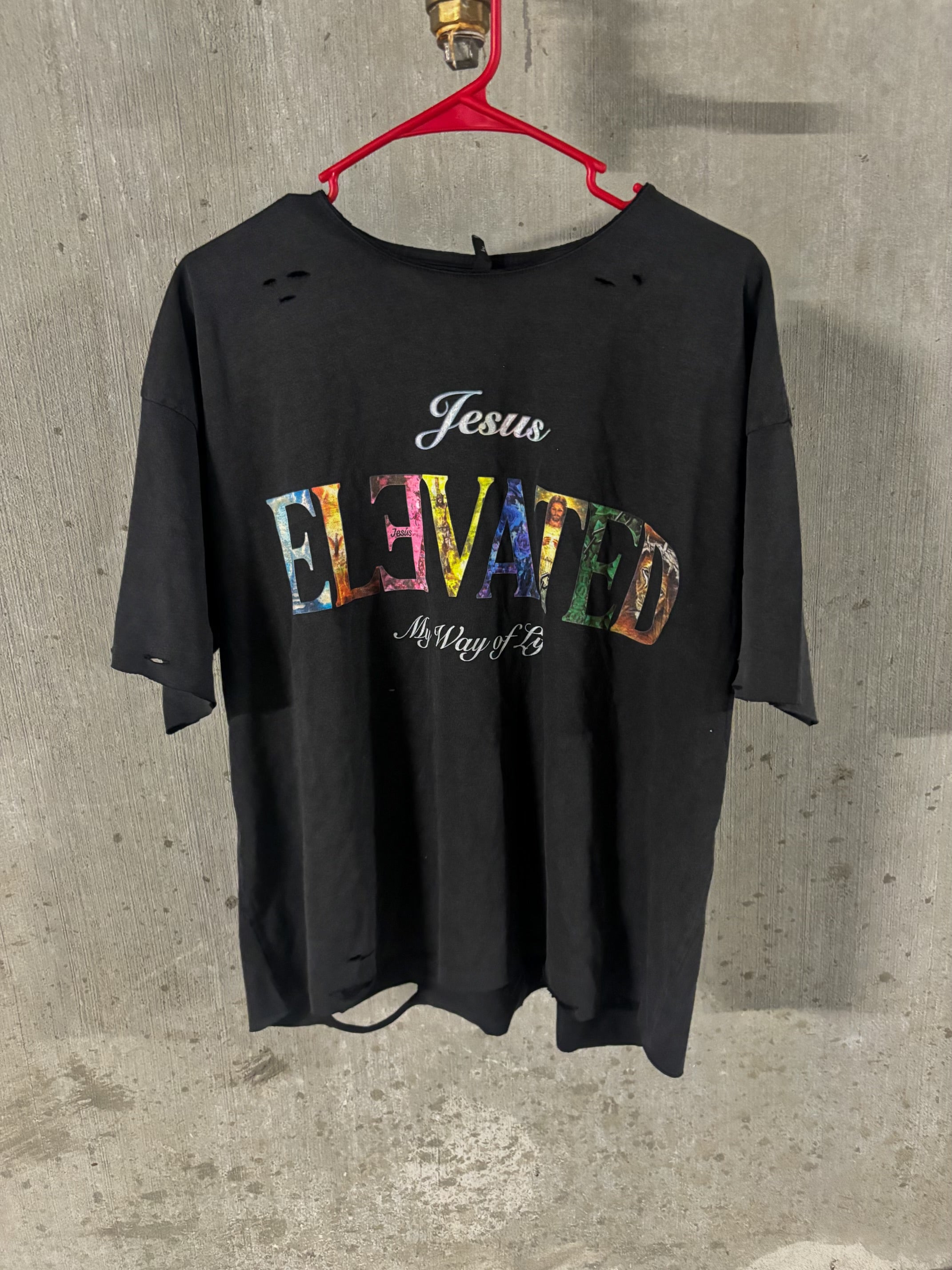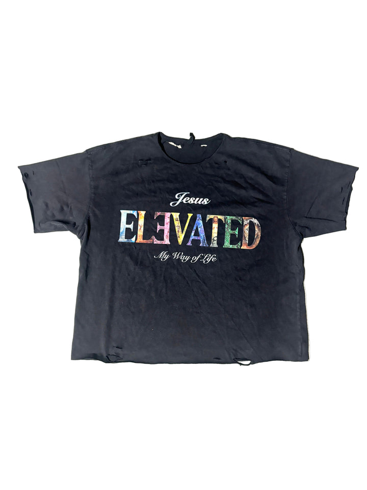 Distressed finish with frayed edges and holes for a vintage aesthetic